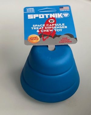 Spotnik Space Capsule Durable Rubber Chew Toy & Treat Dispenser – Large – Blue