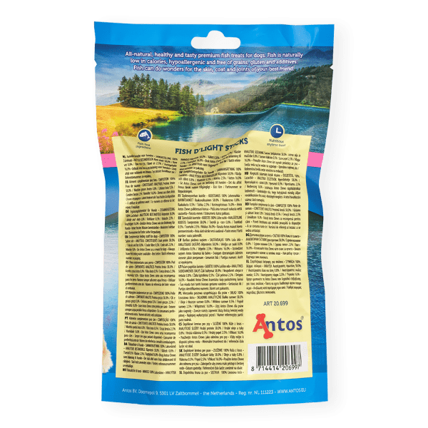 Give your furry friend a taste of salmon with our Fish D’light Sticks. The treats are made of 100% natural edible salmon skins and they also reduce tartar and plaque buildup for healthier gums and teeth.
