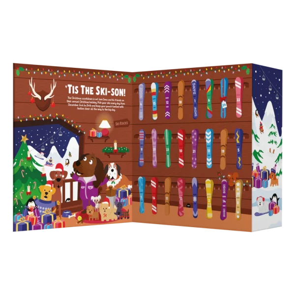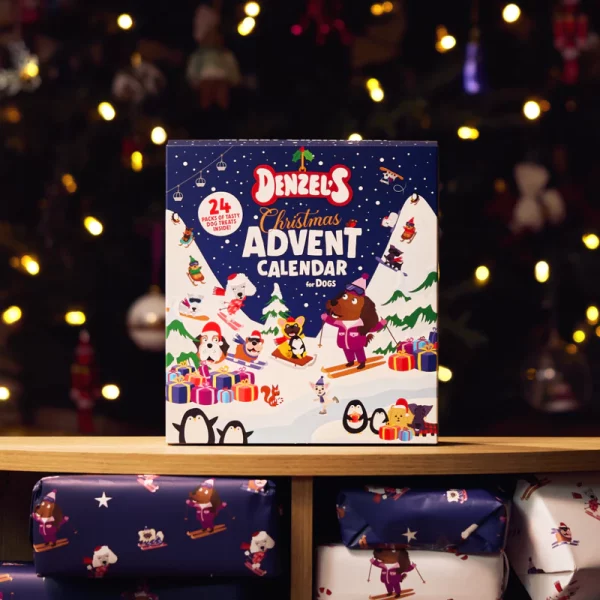 Don’t miss out on Denzel’s best-selling Advent Calendar for dogs: the ultimate Christmas countdown for your pup. Open this GIANT Jumbo Advent Calendar to find Denzel’s ski-rack with 24 doors, each one featuring a delicious mini bag of treats. Yep that’s right – a bag of treats a day!
