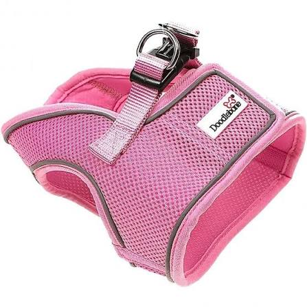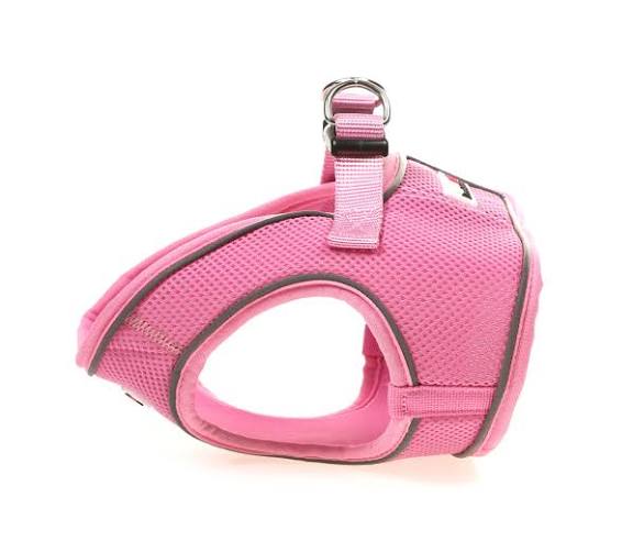 Our Snappy is constructed with soft mesh fabric that is breathable and a little bit stretchy. The harness gives a body-hugging fit with added chest coverage to avoid adding pressure to a particular part of the dogs body.