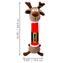 KONG® Holiday Shakers Luvz Reindeer’s long, floppy body satisfies dogs’ shaking instincts—and is also ideal for sliding down chimneys. Low-tone squeaker keeps dogs playing through the holidays and beyond, providing tons of healthy, active play with a pal dressed up for the holidays.