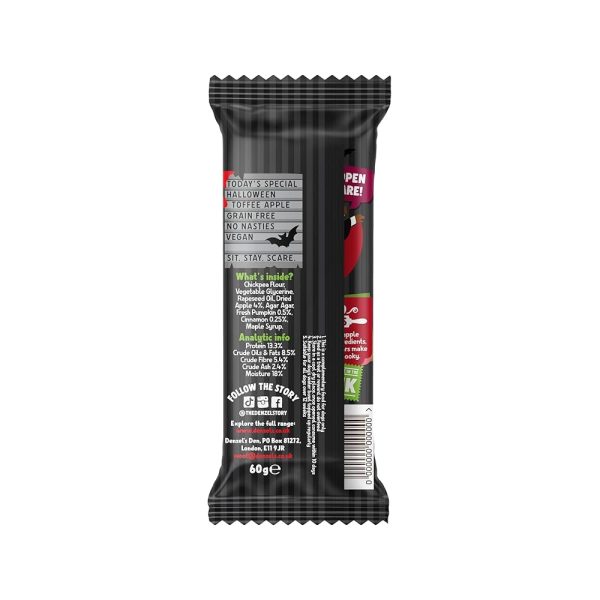 A terrifyingly tasty treat for your pooch. R.I.P the pack open to find 4 tasty vegan-friendly soft-baked sticks. Made with fresh pumpkin and apple and cinnamon. 100% vegan.